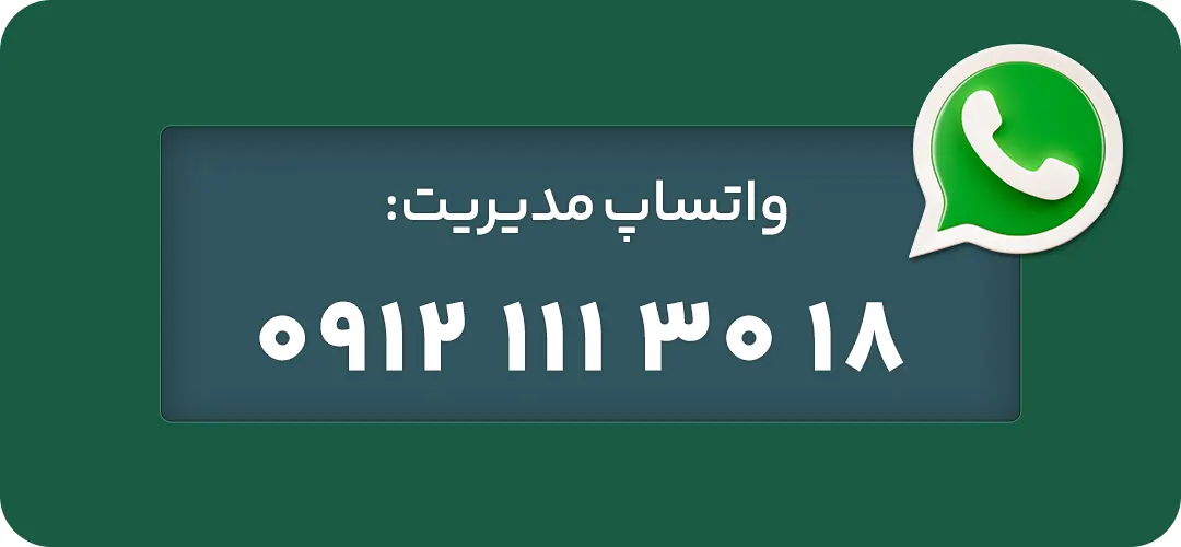 پیشنهاد میکنیم جهت دریافت پاسخ سریعتر با مدیریت فروشگاه با شمارهی: 09121113018 تماس حاصل نمایید. یا در واتساپ پیام ارسال بفرمایید