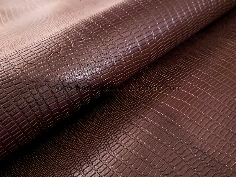 چرم طبیعی گاوی طرح لیزارد رنگ قهوه ای