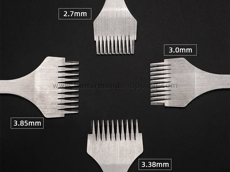فاصله بین نوک سنبه ها در مدلهای مختلف بین 2.7 ، 3 ، 3.38 و 3.85 و میلیمتر است. (در هنگام خرید توجه کنید سنبه مورد نیاز خود را به دقت انتخاب کنید)