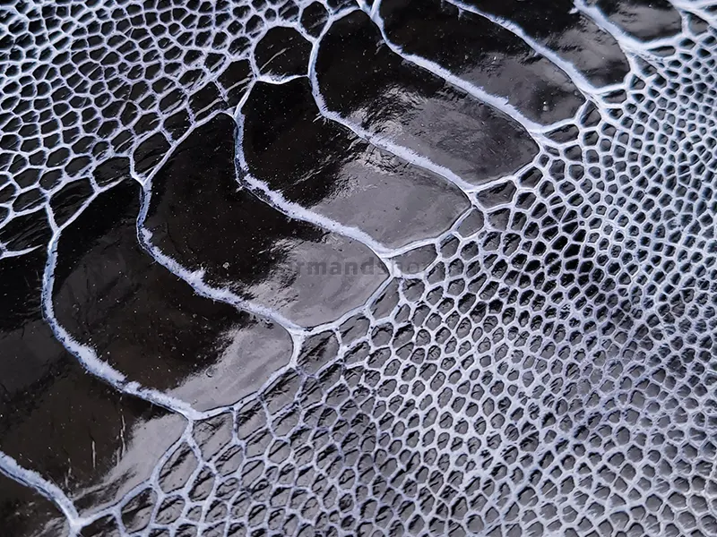 چرم ساق پای شترمرغ رنگ مشکی سفید